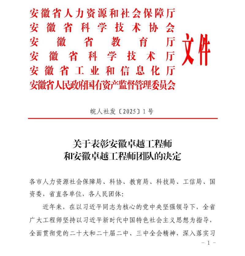 近日,安徽省人力資源社會保障廳、省科學技術協(xié)會、省教育廳、省科技廳、省工業(yè)和信息化廳、省人民政府國有資產(chǎn)監(jiān)督管理委員會聯(lián)合開展“安徽卓越工程師”“安徽卓越工程師團隊”評選表彰活動。經(jīng)層層遴選,裝備集團所屬合肥中亞建材裝備有限責任公司王國慶憑借突出的工程技術成就,榮獲“安徽卓越工程師”榮譽稱號。